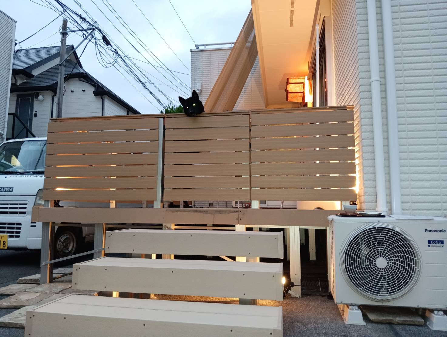 店内への入り口となる外のウッドデッキの階段を上りやすく新しいものに。1階は店舗使用にリフォームをし、2階に新しいキッチンを設置いたしました。